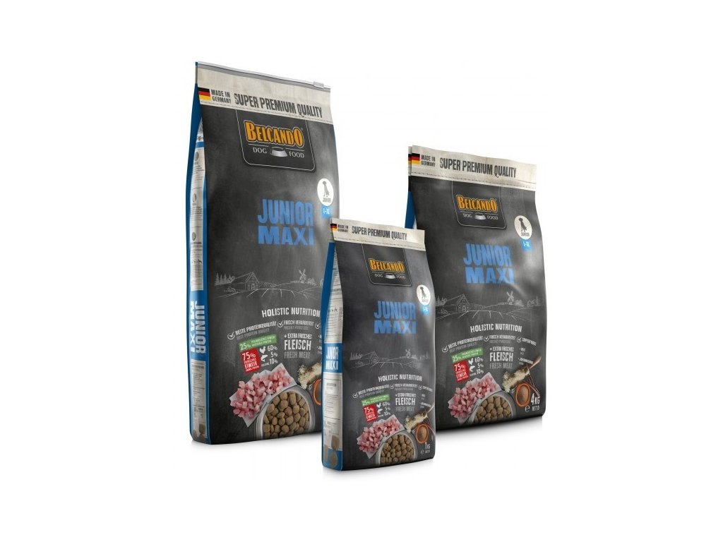 Vybrané suroviny a správná kombinace bílkovin, tuků a vápníku jsou přizpůsobeny pomalejšímu tempu růstu psů velkých plemen. Díky vysokému obsahu dietní drůbeže a snadno stravitelné rýže je BELCANDO® JUNIOR MAXI obzvláště dobře přijímané a snadno stravitelné. Karob s taniny a životně důležitými látky zajišťují vynikající stravitelnost.